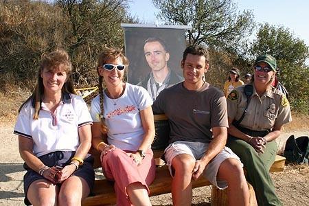In the days of mourning following his death, a group of Mark’s closest friends decided it was important to place a lasting memorial in his honor at Whiting Ranch Wilderness Park. Nine months later, on the pleasant afternoon of October 10, 2004 at 3:00 p.m., 40 people gathered at the top of Dreaded Hill in a ceremony to dedicate Mark’s bench to the park. The ceremony was a gathering of people close to Mark and the events that took place on that tragic day back in January. The bench is a lasting memorial for all to see, but the story of how it got there is a tribute of hard work and dedication to the memory of a lost friend.